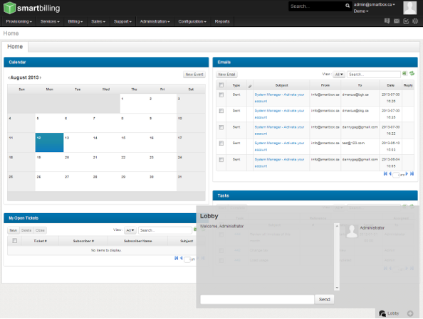 Smartbox is a Canadian research and development company focused on developing software solutions for service subscription billing and telecommunications rating and routing management. Smartbox was established in the early 2000s and development its first telecommunication software for the NACT telecom switch. As Telecom moved into the VOIP world Smartbox grew its telecommunication software to handle soft switchs that passed VOIP traffic. The explosion of the internet is allowing more services to be developed and branded for customer but lacking the software to manage these services and to invoice them. Smartbox used its invoicing experience from telecommunications to build a software that would allow the management and invoicing of any subscription service.
